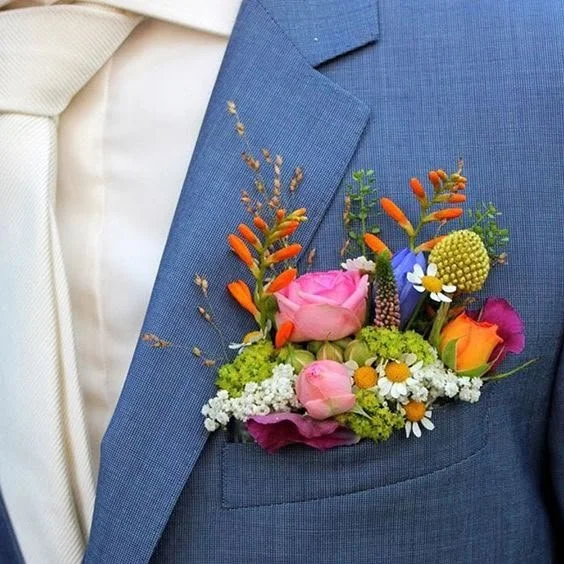 Made with floral & greenery, this boutonniere slides into your tux pocket as if flowers are growing from it. All prom designs are made custom based on the color palette of the student. Please notate your desired colors on the “Request a Delivery” form at the bottom of this page, & I will design it perfectly curated to you!